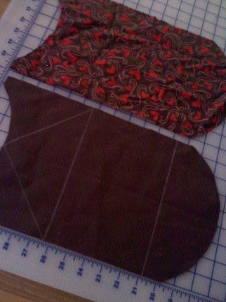 You are all set. Cut 2 pieces. One from felt or a thicker fabric like canvas I used brown canvas and the other from a Valentines cotton fabric.